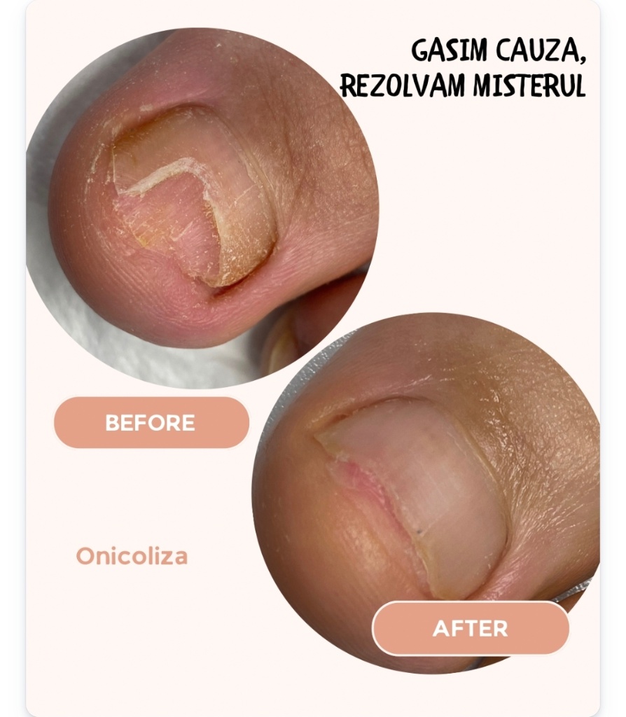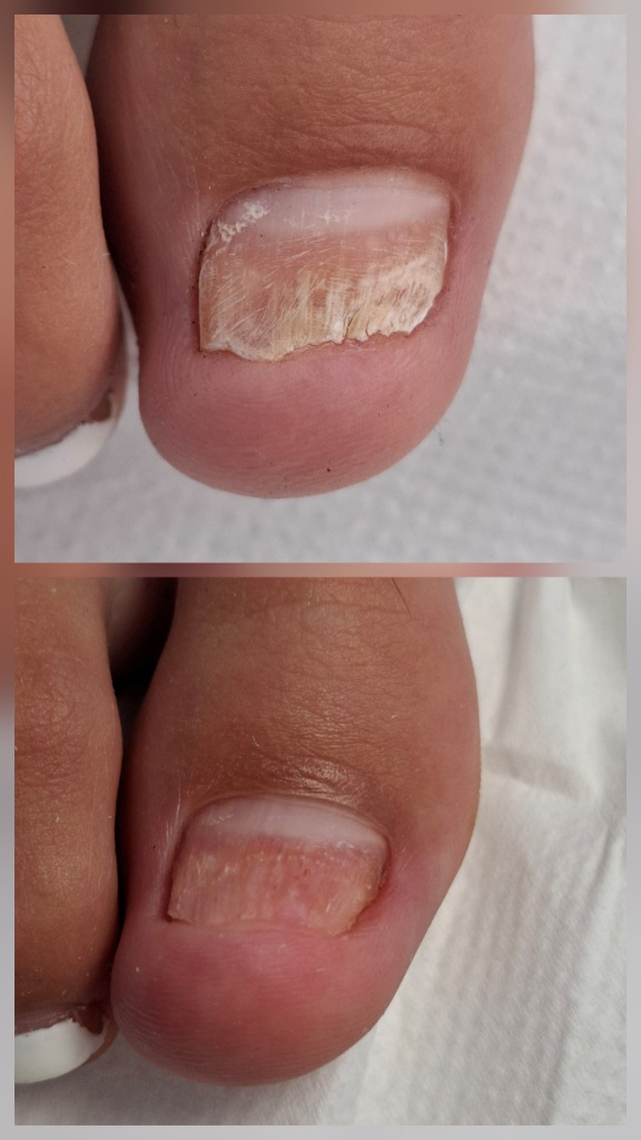 Procedura realizată în condiții de maximă siguranță și igienă, destinată persoanelor care se confruntă cu unghii îngroșate, friabile, decolorate, deformate sau dureroase. Tratamentul constă în curățarea profesională a unghiei afectate, subțierea și corectarea formei acesteia, reducerea presiunii și a disconfortului, folosind instrumentar steril și tehnici atraumatice. Procedura nu este dureroasă și contribuie semnificativ la îmbunătățirea aspectului și funcționalității unghiei. Beneficii: -reducerea durerii și a presiunii la mers -imbunătățirea aspectului unghiei -prevenirea complicațiilor (inflamații, infecții secundare) -creșterea eficienței tratamentelor antifungice aplicate ulterior