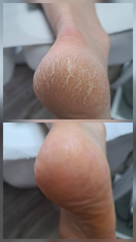 Procedura de curățare a călcâielor îngroșate este un tratament estetic și igienic destinat îndepărtării pielii îngroșate, uscate sau aspre de la nivelul călcâielor. Intervenția are rolul de a reda pielii un aspect neted, sănătos și confortabil la mers. Tratamentul include: evaluarea stării pielii și a gradului de hiperkeratoză; înmuierea pielii pentru facilitarea curățării; îndepărtarea controlată a pielii îngroșate cu instrumente profesionale; finisarea și netezirea suprafeței călcâielor; aplicarea unui produs hidratant și emolient pentru regenerarea pielii. Procedura este nedureroasă, sigură și recomandată persoanelor cu piele uscată, îngroșată sau crăpată, contribuind la îmbunătățirea aspectului estetic și la prevenirea fisurilor dureroase.