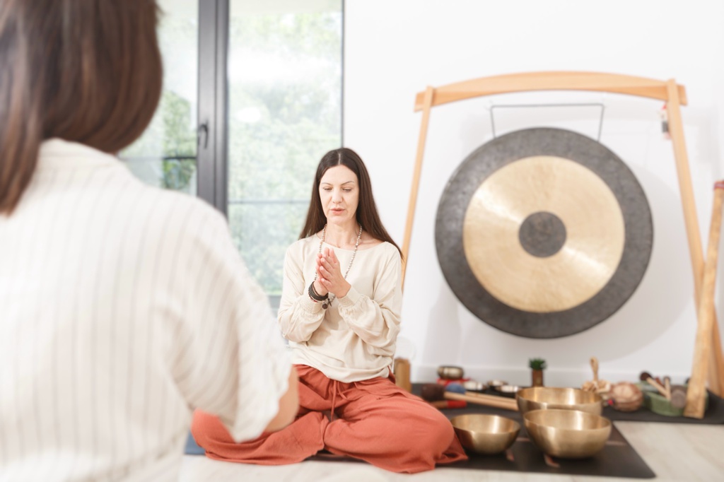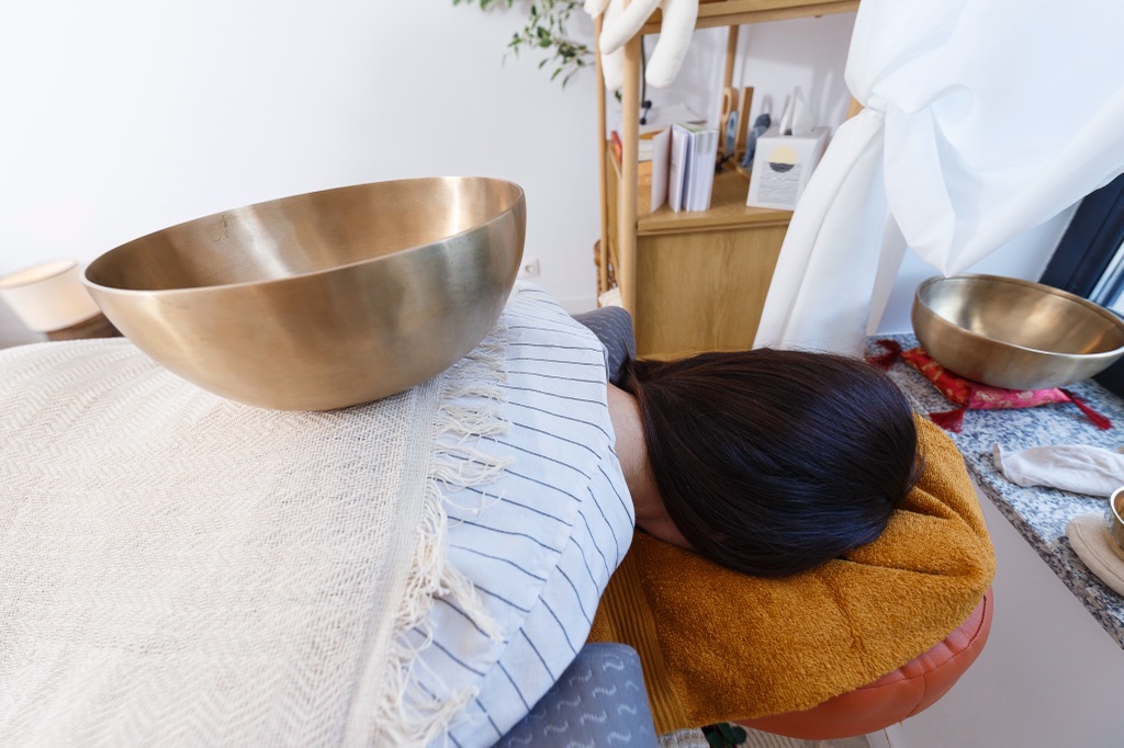 Terapie individuală realizată cu boluri terapeutice și instrumente vibraționale, susținând relaxarea profundă, eliberarea tensiunilor și armonizarea energetică.